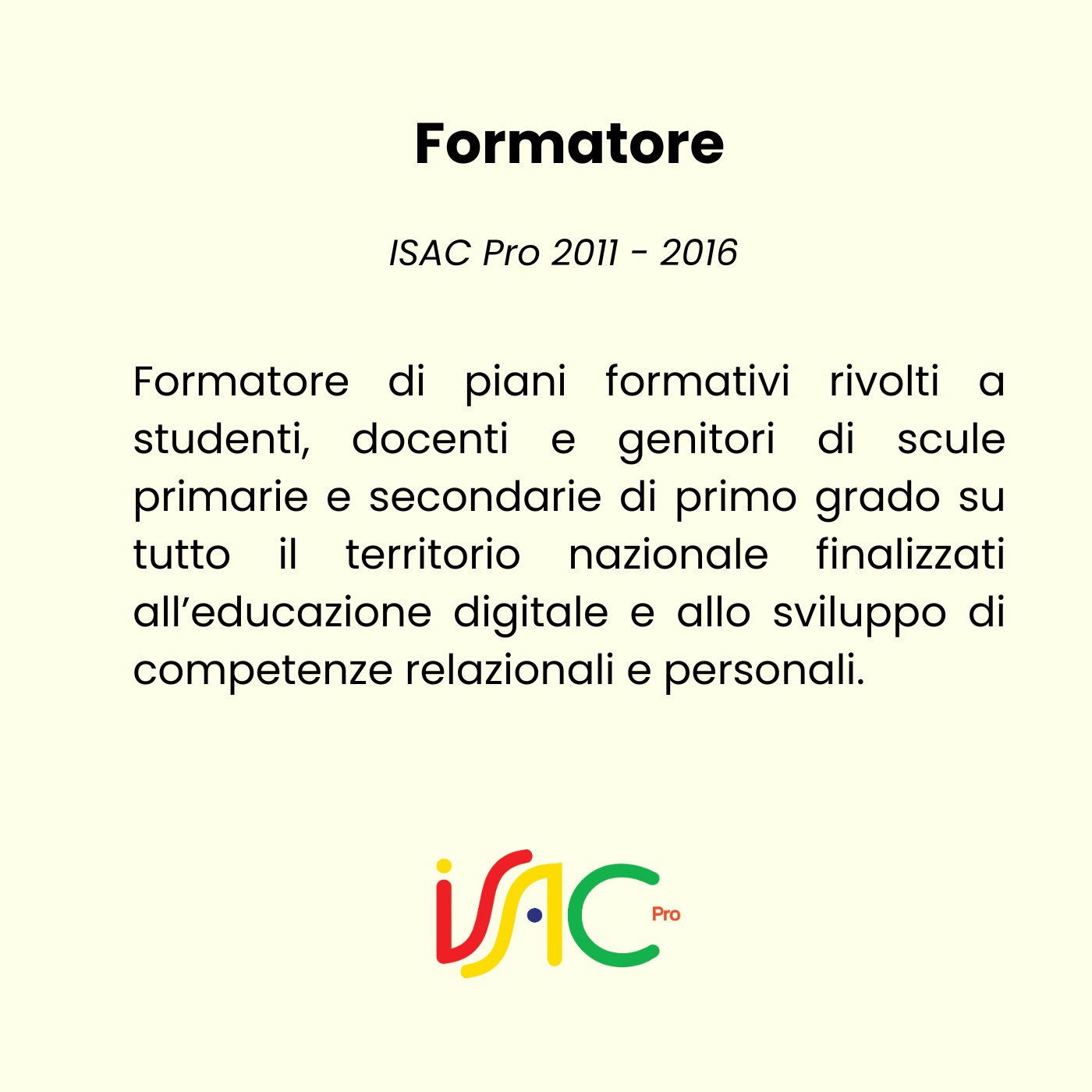 Le scuole, le Associazioni, i gruppi formali e informali di aggregazione giovanile sono luoghi generativi. Fare formazione in questi contesti, per me, significa creare occasioni di scoperta e sorpresa in cui non bisogna avere il timore di abbattere qualsiasi barriera al nuovo che viene avanti.